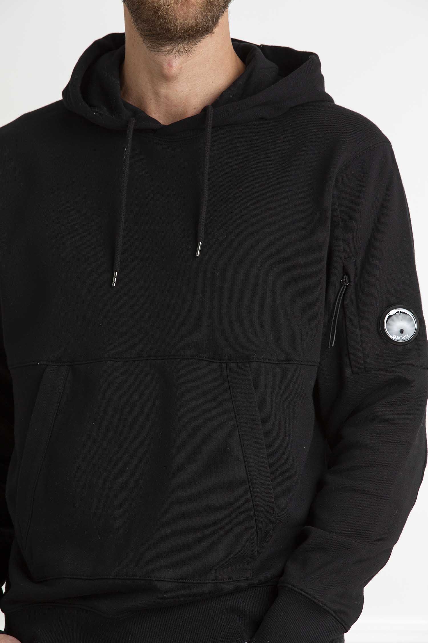 Felpa con cappuccio realizzata in cotone a trama diagonale garzato.
