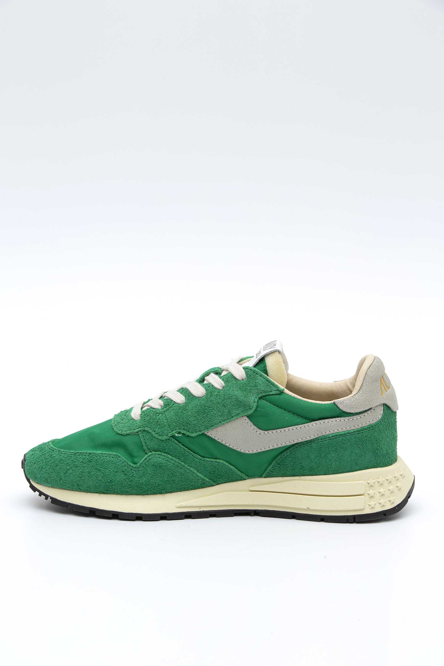Questa scarpa da ginnastica da uomo è realizzata in una speciale combinazione di pelle e nylon ed è rifinita con inserti in suede dall’aspetto vissuto nei toni del verde cipresso. Il pannello laterale dalla forma dinamica aggiunge un tocco di bianco. La speciale suola running in gomma e Phylon aderisce perfettamente al terreno ed è personalizzata con il logo Aarrow in 3D.